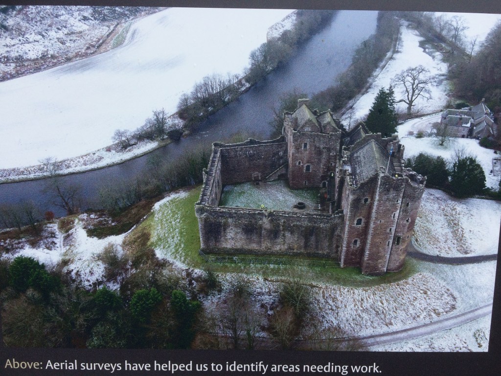 Castle Doune has none of the renovation and style of Stirling Castle, in fact its in much need of renovation. But what caught our imagination was it’s origins and it’s sites strategic importance which this copy of a winters photo will show.