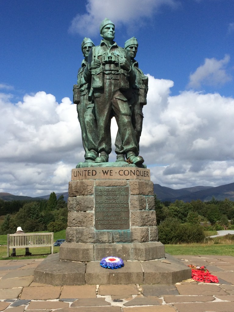 Leaving Fort William, with Ben Nevis up in the cloud to the right, we continue north and the country opens up, a little wilder with mountain vistas all around. Just pass Spean Bridge one comes upon the Commando Memorial it’s such an impressive monument looking out across the glen towards Ben Nevis. It’s an inevitable tourist magnet, but nonetheless worth a stop for all of that.