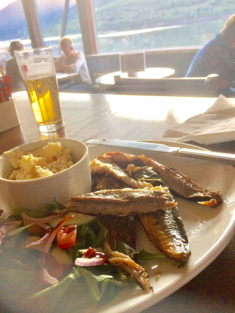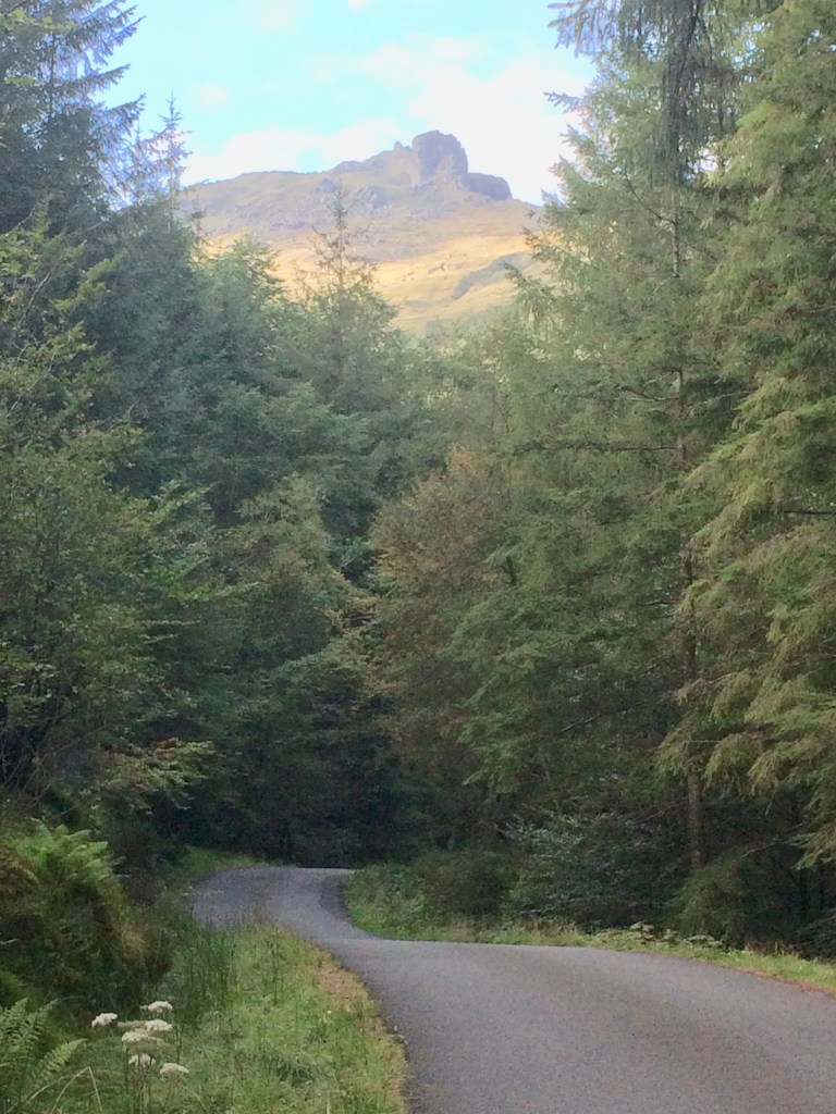 The road sweeps down the hill into Arrochar which lies at the head of Loch Long. Ringed by mountains and the sea loch that is Loch Long, it’s a pretty picture. We found our B&B in the village and were recommended to have supper at the Bothy Bar and Restaurant across the road . We subsequently had an excellent evening there in particular an amazing smoked mackerel salad, just perfect with a view onto the Loch.