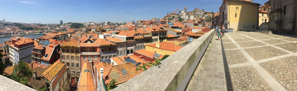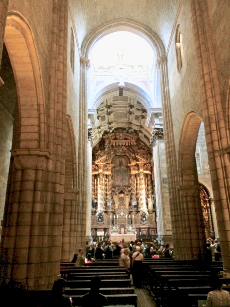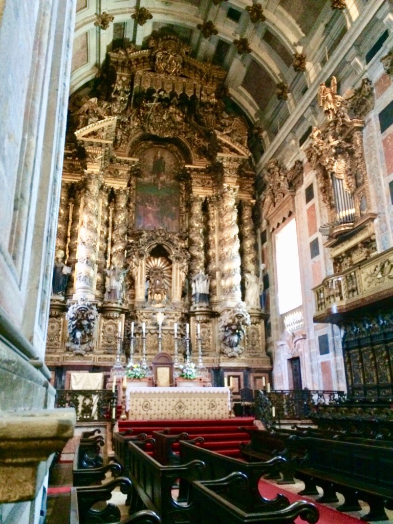 We had fun wandering through and up steep passageways that gave us an occasional glimpse of the Oporto Cathedral. But at the top the splendour of the Cathedral and the Square, are displayed before you, impressive indeed, as is the inside.