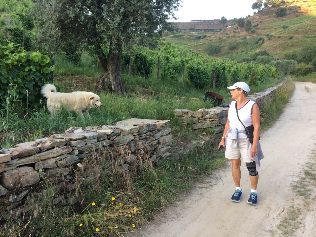 On our first morning at the Quinta, we decided to take a walk around the vineyards before breakfast. In the courtyard was a map of the walk, and two beautiful dogs having rest, until we turned up for our walk!! And off they went , in the lead on the walk. Every so often they would stop and look back to see if we were keeping up!
