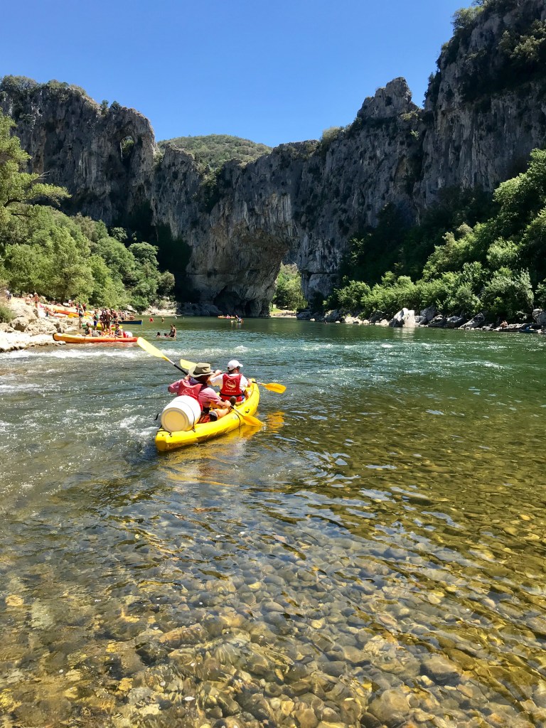 So we did it twice, but actually it was to accompany two sets of family who joined us during our stay, but the canoe trip was fantastic. There are many places at Vallon to hire canoes. The place we selected rewarded our safe return with glasses of cool Ardeche Rose wine, or a soft drink, ideal.