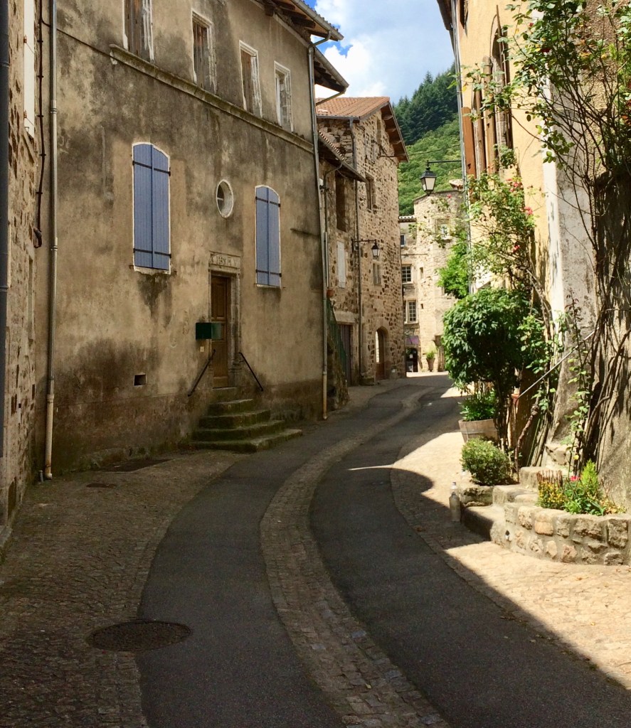 It was a lovely drive to Thueyts, spectacular scenery en route as the roads wound up the Ardeche gorges. We had chosen Thueyts to visit the Pont du Diable, but on arrival the town looked so interesting that we had to wander.