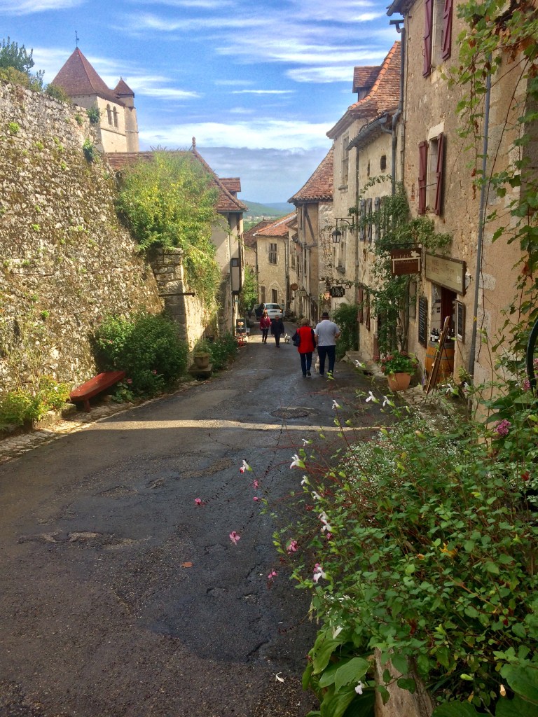 You join a road and have a few options to access Saint Cirque Lapopie which sits high above the river valley. We chose a scramble rocky path up through the trees, which gave some great views and emerged out at the top of the village.