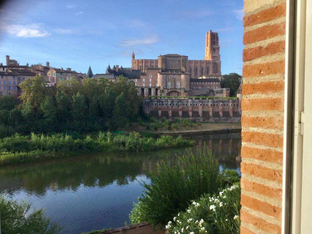We flew into Toulouse from Manchester, rental car and a straightforward 65kms later, we arrived at Albi. We had a stunning AirBNB on the north side of the Tarn river looking down and across the river to the Cathedral of St Cecile.