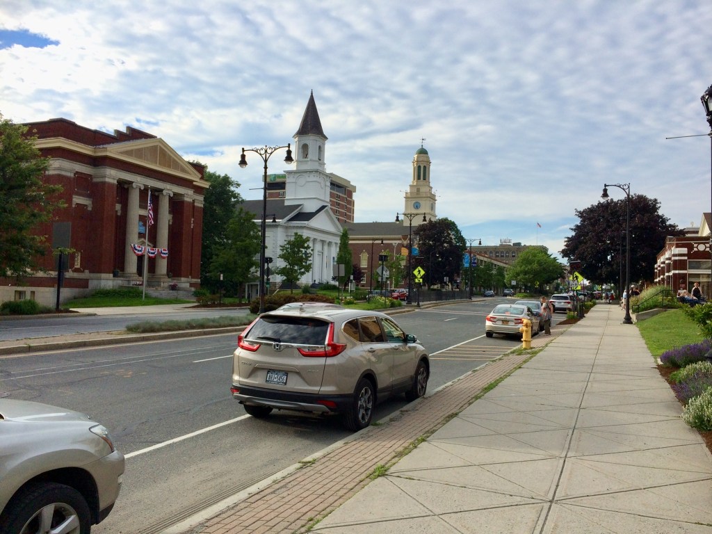 To get directly to Lenox is a 2.5 hour drive up the I90 freeway (dual carriageway and tolls – rental cars have e tags) from Boston. It’s a very pretty New England township surrounded by the wonderful green wooded hills and valleys of the Berkshires. These are secondary woodlands of maple and oak, amongst others, the original timber becoming charcoal to feed the coal and iron industries now largely disappeared .