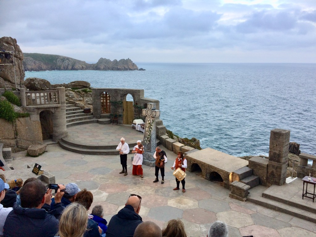 The Minack Theatre is a world renowned unique theatrical venue whilst perched high above the English Channel on the Cornish Coast. Please check out their web site for plays that match your taste and timing. The play that fitted out timetable was the “ Roses of Eyam”, a tale of the Plague in 17th century Derbyshire.