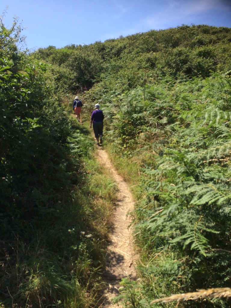 We were fortunate to be able to experience several sections of this Coastal Path. It is well signposted, the scenery is nothing short of spectacular be it in sun shine or driving rain. The Coastal Path winds along the tops of headlands and then dives down into adjoining sandy or rocky coves, with steep hedgerows either side of the path, sometimes forming a tunnel of foliage.