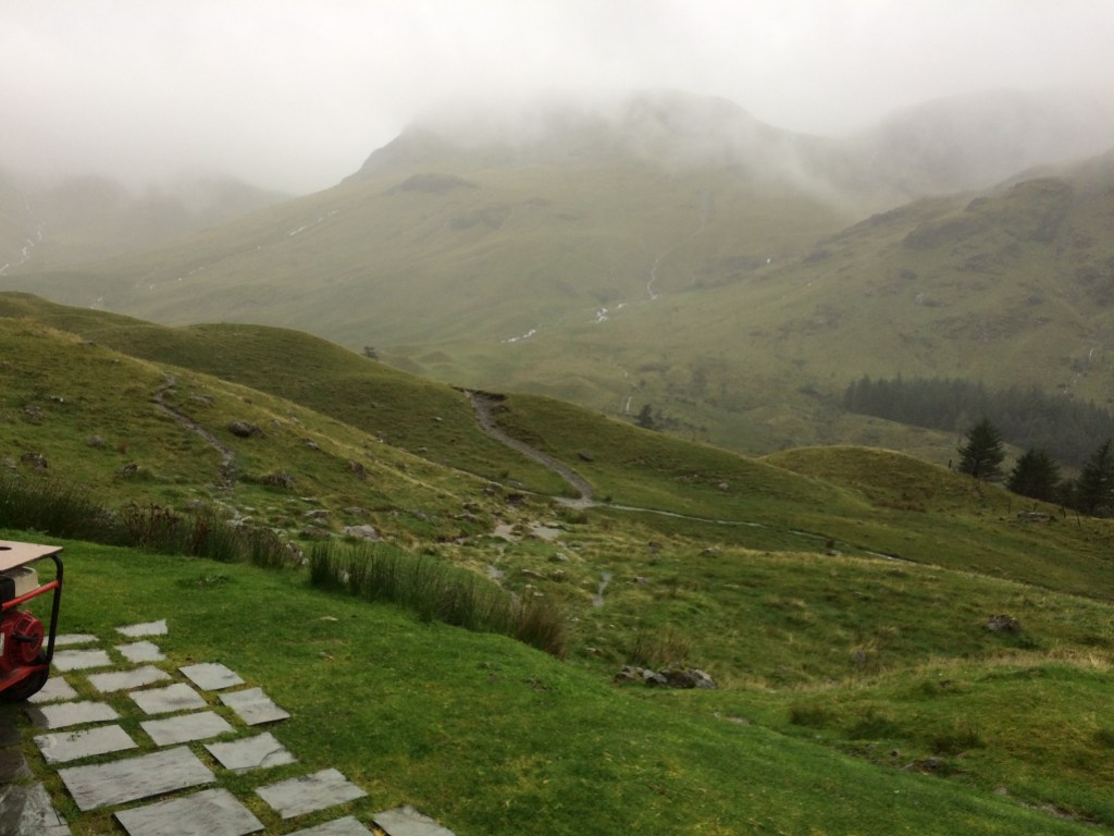 Woken on Day 3 by the rain lashing on the skylight of our dormitory, one knew that this was not great news. I needed post a litre of Ennerdale best ale to get to and from the outside toilet without getting drenched!! On return and slightly wet, surveying the valley one saw the Lake District weather in full flow.