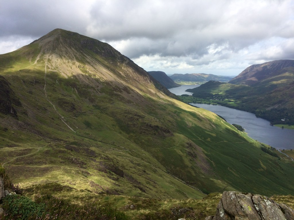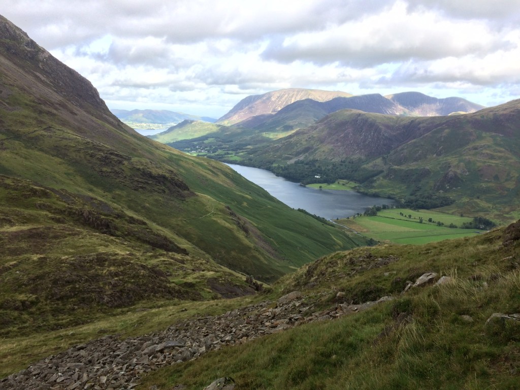 Or not as it turned out, the clouds had come down overnight onto the mountain tops and the wind had become quite blustery. But no rain, and equipped with pack lunches from the YH, good trekking boots and waterproofs + essential safety stuff from a good friend near Kendal – including a map reading lesson reviser and a compass, we set off. One of the Lakeland Passes to access Ennerdale is called Scarth Gap and this links the beautiful Buttermere valley to Ennerdale. So Scarth Gap was our first destination, about 500 metres of climb up a superb path, the reward being amazing views of Buttermere and beyond.