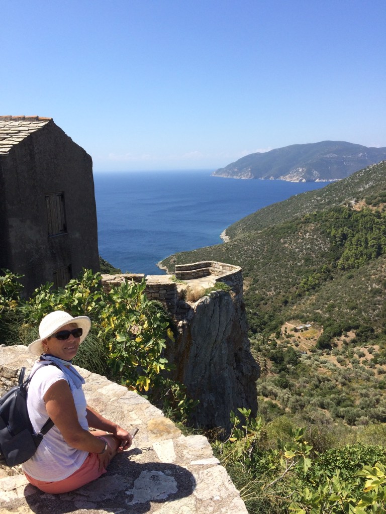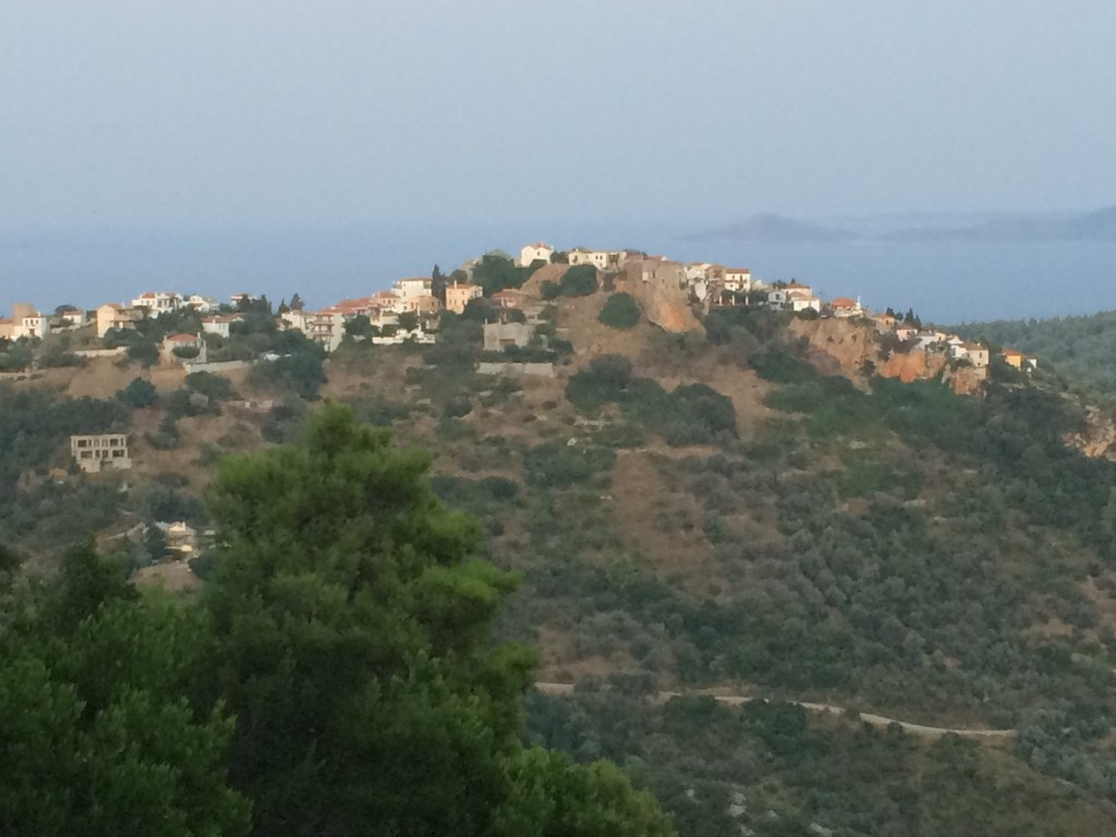 It’s a 30 minute Quik Cat ferry ride from Skopelos Port to the Port of Patitiri on Alonissos. As the ferry rounds the southern end of Alonissos the Old Village, Hora, comes into view standing above the rest of the island. It’s a view that impresses at first viewing and for us stirs emotion at subsequent views it’s become a homecoming !