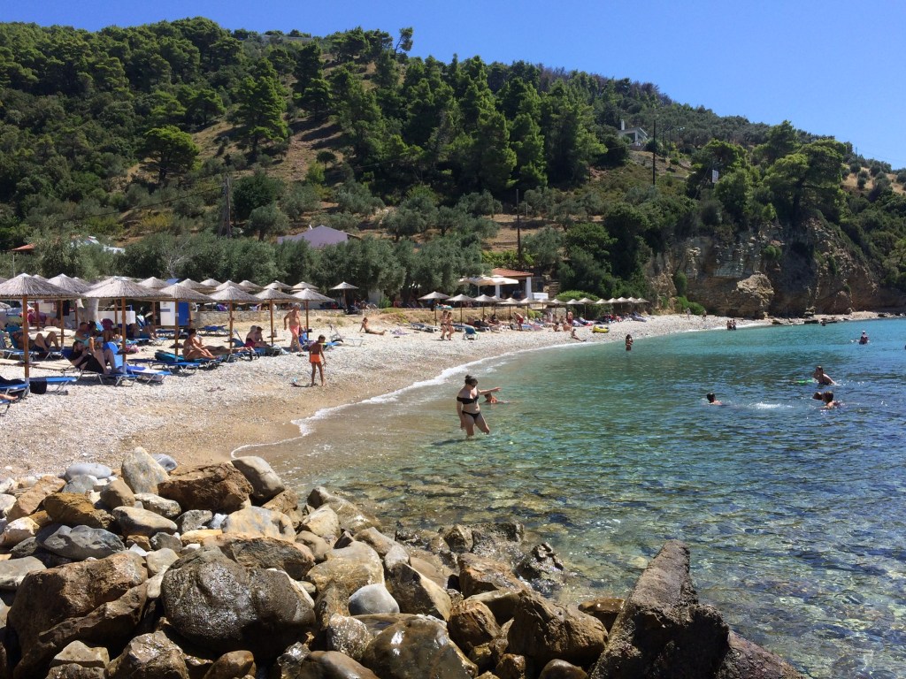 At the North end of the island it’s more remote, very rural, goat herds, olive tree groves and small fishing ports. Alonissos and it’s neighbouring island Peristera have a Marine Sanctuary which protects rare species and allows a tourist diving industry to develop. Similarly the beaches and bays on the eastern flank offer sheltered moorings to visiting yachts and great tavernas & swimming for all visitors.