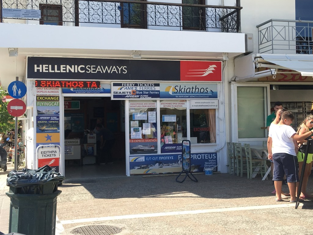 In late August 2019, we flew to Skiathos with Thos Cook Airlines from London Gatwick, 08.25 Departure. It was a 3 + hour flight, and from Skiathos Airport a mere ten minute Formula 1 style taxi ride to Skiathos Port. From there we collected our pre on line booked ferry tickets from the Ferry Office.
