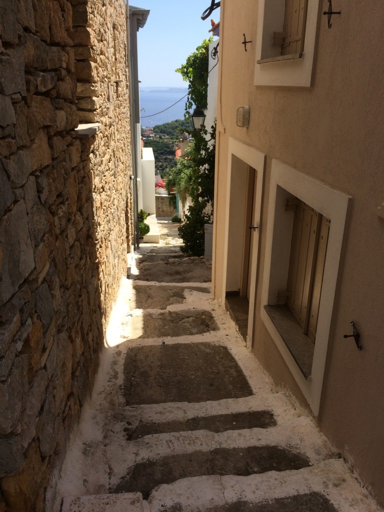 To give some context, in 1965 there was an earthquake impacting the Old Village, many properties were very badly damaged, some not so but the Greek Government subsequently built new housing down at the Alonissos Port of Patitiri . Majority of villagers moved to Patitiri and by the 1970s a few people like us were buying up the old houses and creating holiday homes.