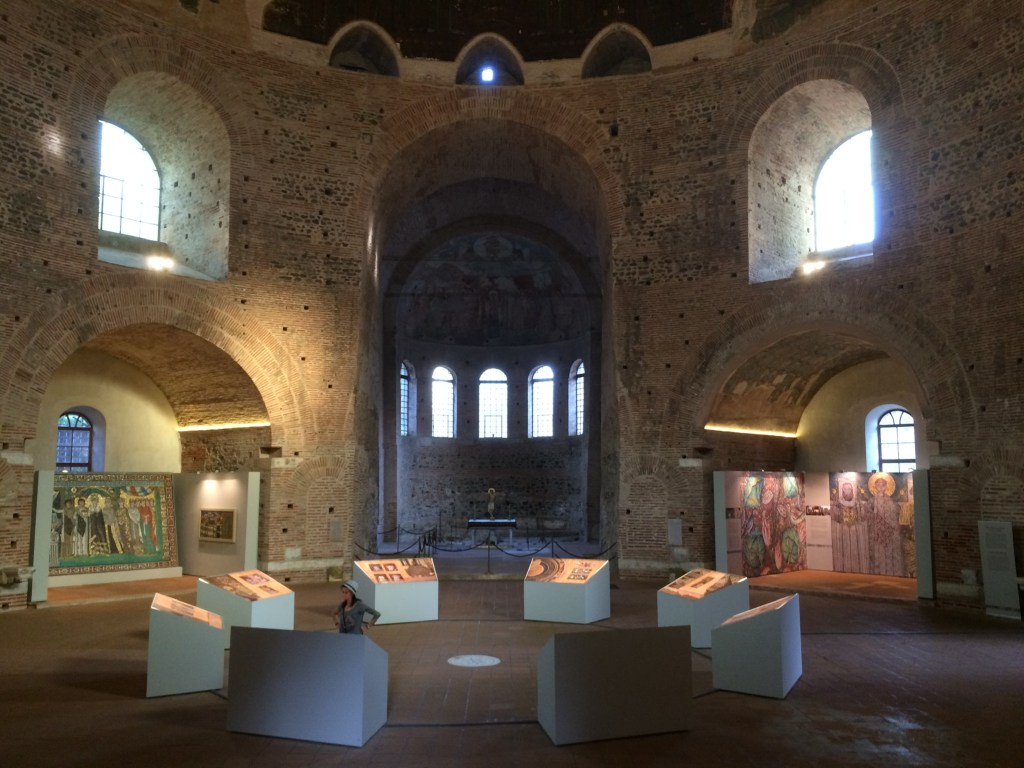 The Rotunda is one of the few substantial examples of Byzantine influence, remaining and restored. Brick construction seems the preferred building material and it’s an impressive place to visit. When we did visit there was an exhibition of Byzantine mosaic on display linking Thessaloniki with Lavassa in Italy.