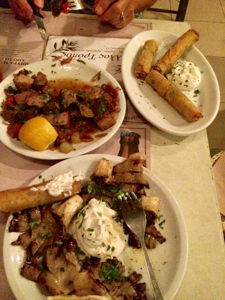 One joy of travelling is being able to sample and enjoy a range of different foods. Thessaloniki has a huge range, we enjoyed a local “ Meze” restaurant Spring Rolls, but thin with cream herby cheese and mint and piping hot mmmm