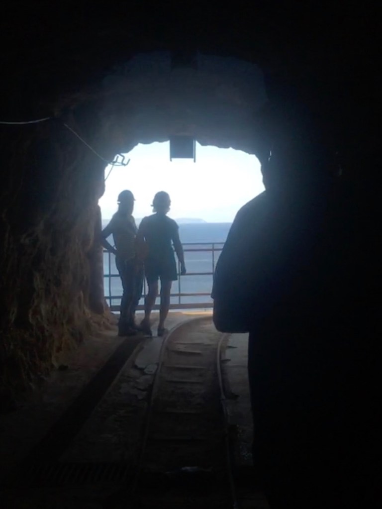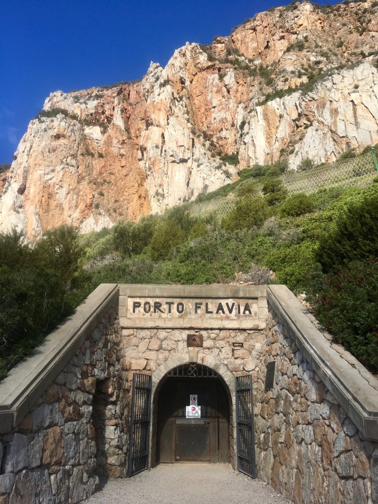 Porto Flavia was one of the main mines in the area, and one of 4 that the owner eventually connected by a railway to deliver bulk shipments of minerals such as lead and zinc to ore carriers below. The mine was open for visitors, so we did, and with so many similar mines eg Cornwall in England and tin mining, the conditions that prevailed for the workers were dreadful. Originally mineral ore carried on the backs of workers to small sailing boats then trans shipped onto larger vessels. Today just a view of the past remains, and some history to learn from perhaps.