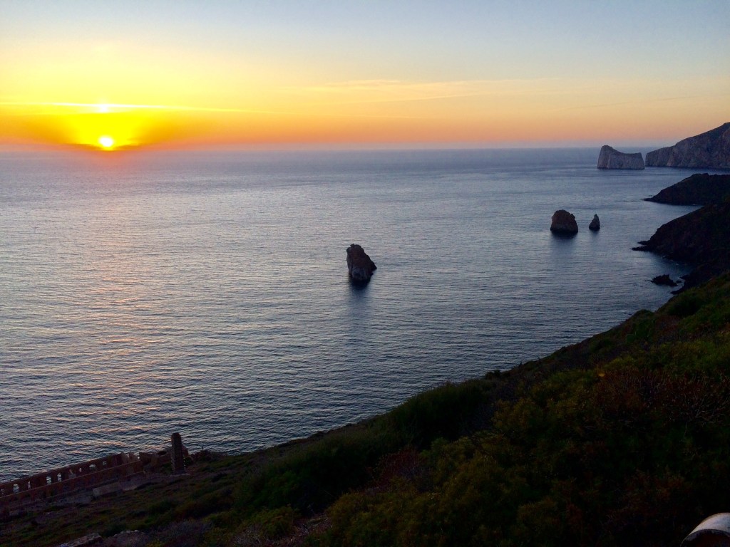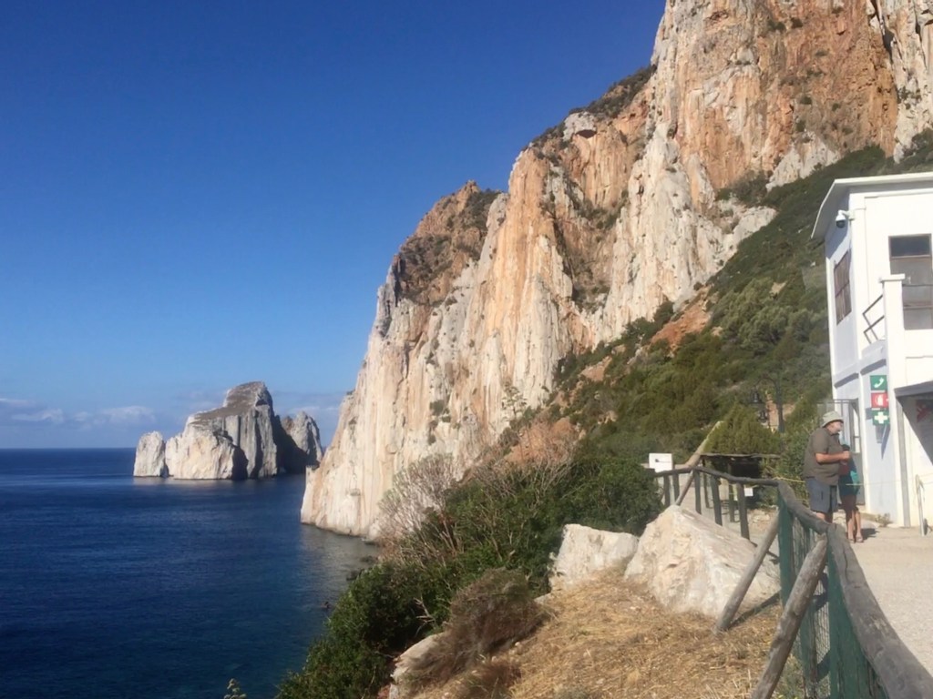 The centre of Nebida village is a square and to the cliff side of that a round hill with a “ Belvedere” that encircled it. The views from the Belvedere were extraordinary, early in the morning superb, and sunsets viewed from the pizza restaurant actually on the Belvedere, magical.