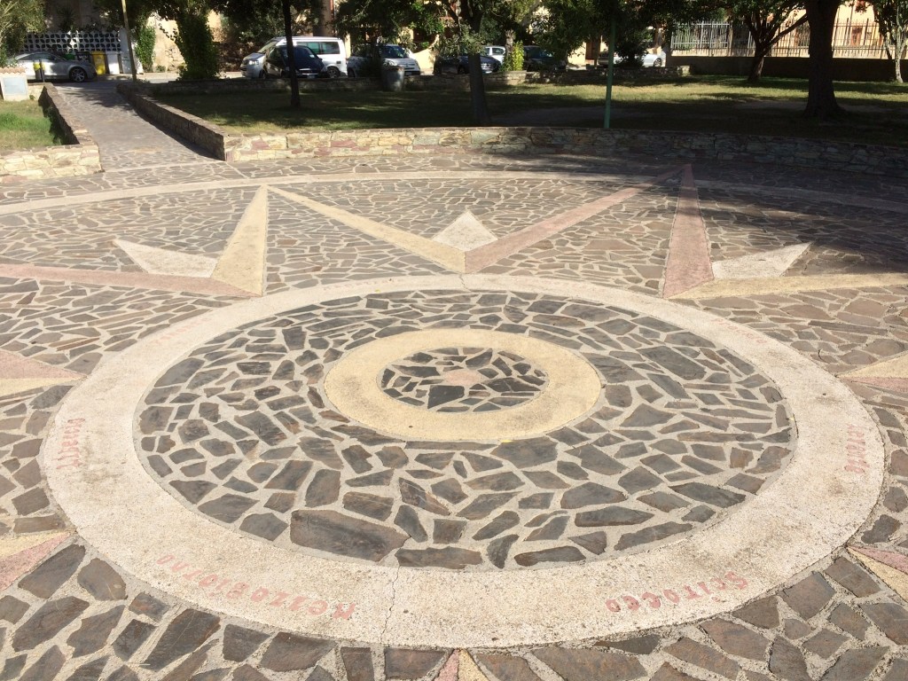 The square’s focal point was a stone mosaic featuring the names of a number of winds that occur in and around the Meditarranean, eg Mistrale, Scirroco, Levante etc. There were also two beautiful statues there, one a miner holding a pit prop, and the other of a woman.