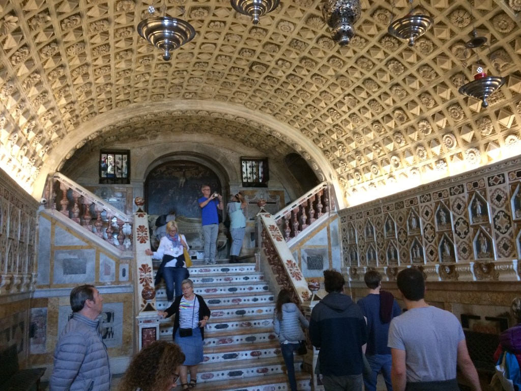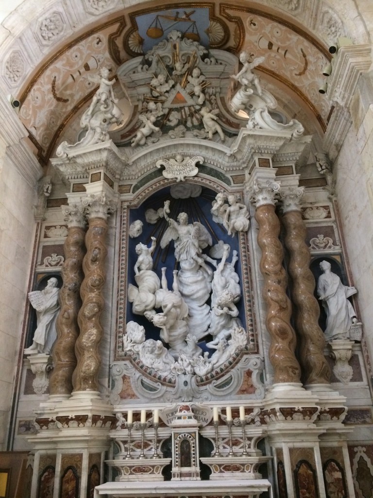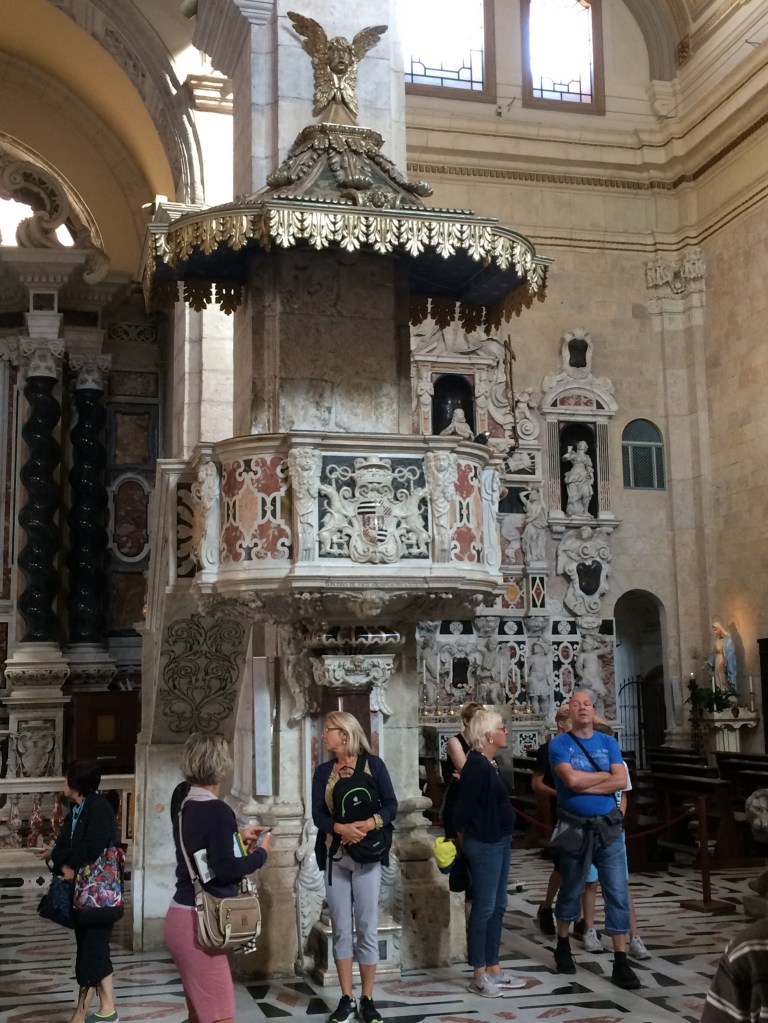 We have a bit of a fascination for the often superb architecture and decoration of the churches, cathedrals and monuments we come across in our travels and Cagliari is no different. Visiting church premises on this years trip we have encountered a number of weddings and a few funerals, plus ordinary religious services. At Cagliari’s Santa Maria Cathedral our initial arrival coincided with a funeral being conducted, which was a good excuse for a coffee and marmalade croissant stop, before resuming our visit to the Cathedral.
