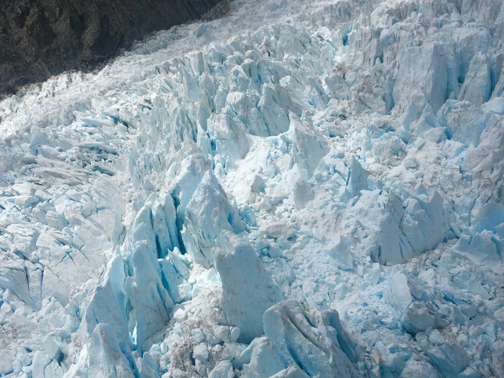 From Moana our South Island tour took us via Greymouth down to the township of Franz Josef, home to its famous glacier and a great place to explore the area from. If you like walking there are options from valley floor paths, to treks up onto the glacier. Or you may prefer to view the Southern Alps from the air and there are many helicopter options, one of which our tour party took advantage of, it was spectacular as you can see below.