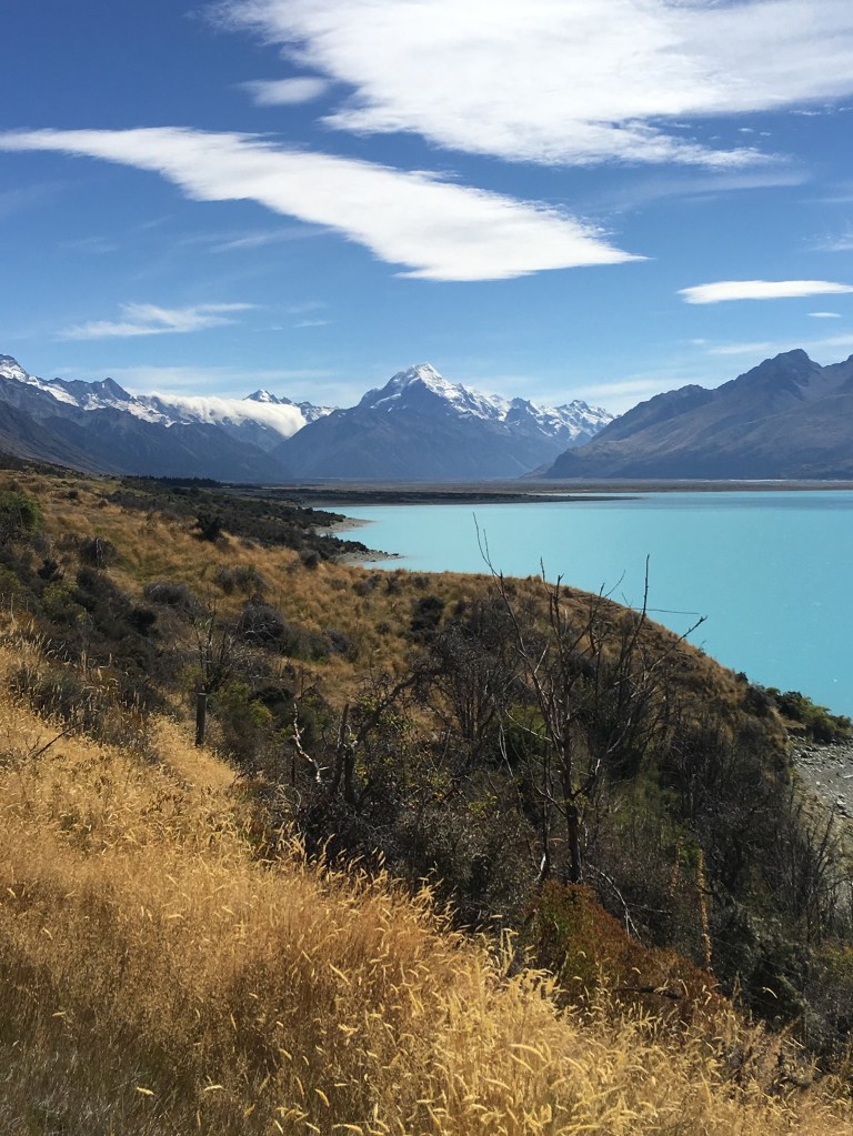 Mount Cook itself is a real tourist destination, helicopter flights up to the glacier and beyond, mountaineering adventures and more simple walks. But even if you only have a few hours to stop to look, perhaps lunch and a gentle walk, this is a “ must visit destination”!!
