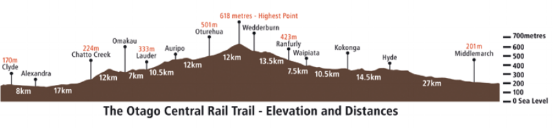 It starts at Clyde and some 160km later you arrive at Middlemarch. Being an old Railway Track the elevation is very modest and the trail itself is in great condition. We rode this in 2015 and had four nights accommodation two at a motel in Alexandra and two in a motel at Roxborough. It’s fantastic country, hot ie 30c + in February and cold ie freezing in the middle of winter. We highly recommend the ORT if this type of cycling sounds like you. In hindsight if reasonably fit one could do it in 3 days, but 4 or 5 will allow a more leisurely pace and time to enjoy the superb countryside.