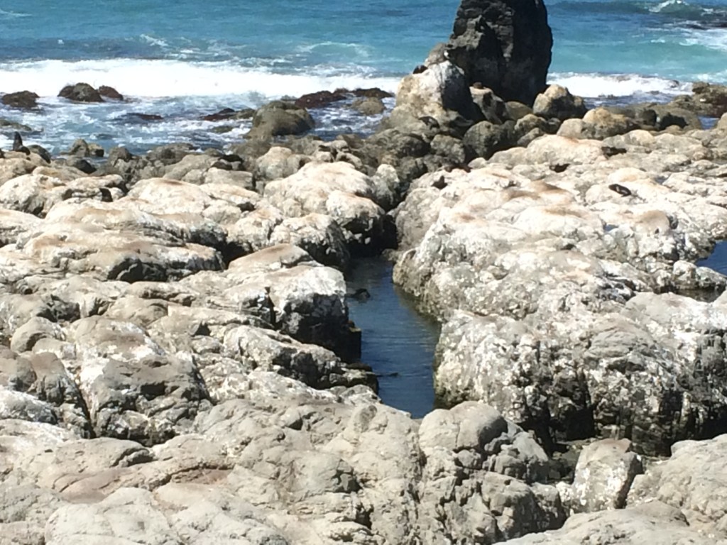 Seals bask by rock pools