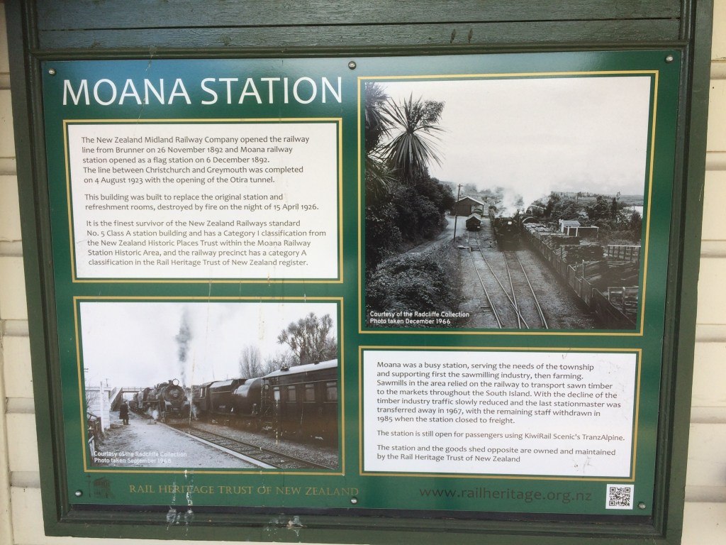 The Trans Alpine train service runs from Christchurch on the east coast to the end of the line at Greymouth on the west coast. This trip we decided to disembark prior to the end of the line, at the small settlement of Moana, permanent population 92, on the shores of Lake Brunner. It’s a truly beautiful part of the world and a stopover we would thoroughly recommend.