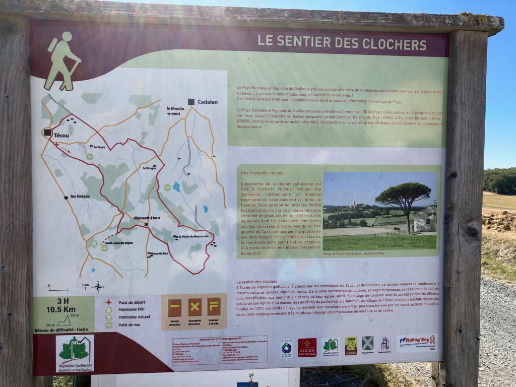 About 20km west of Albi lies the small town of Lisle sur Tarn, again with 13th century history and more wine growing it being closer to Gaillac and its appellation. On the day of our visit we had spent the morning completing a decent 9km countryside walk around the hamlet of Tecu, not far from Lisle. The Albi Office de Tourisme had given us some excellent “walk sheets – randonnes”, this one was entitled “douce collines “ – “gentle hills”. And it was definetly “douce collines “ but the day was a hot 32c.