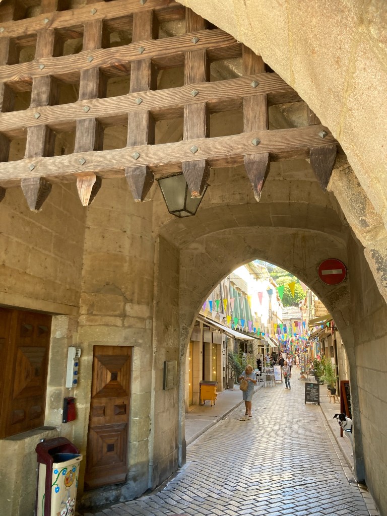 CDM is a small version of Lisle but this time not by the river but set up on top of a hill, with gates plus ramparts to protect, a pretty central square and lovely little church with a stunning painted ceiling. Again the houses are beautifully restored, but it is a bit of a tourist Mecca!