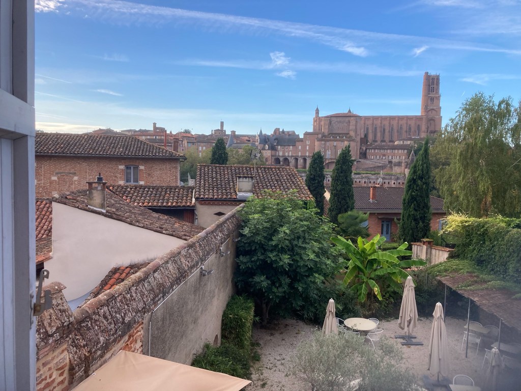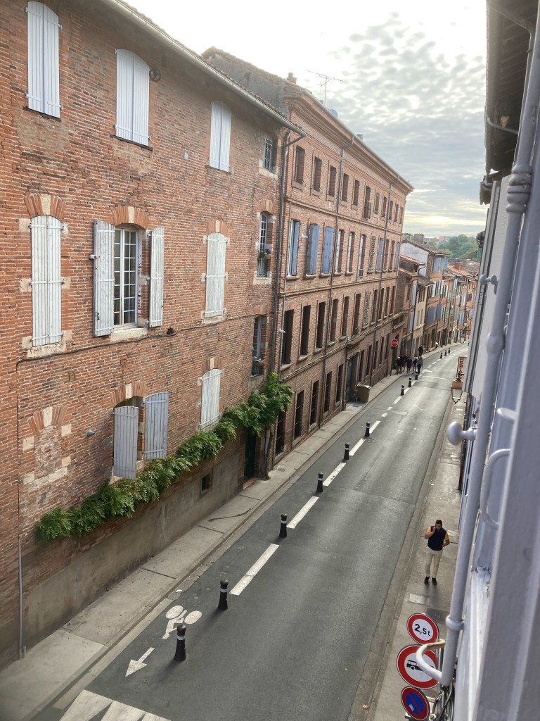 We stayed in an upper floor apartment of an old terrace house on the north bank, in the Madeleine area of Albi (after the church of the same name). Probably built originally in the 17th century, narrow streets, cobbled in part and great views across the Tarn to the St Cecile Cathedral and it’s attached Palace de Berbie, with its stunning formal garden.