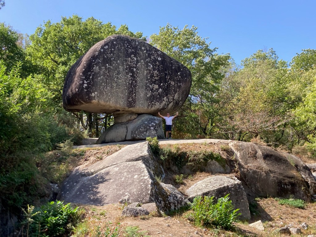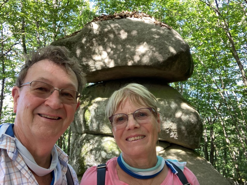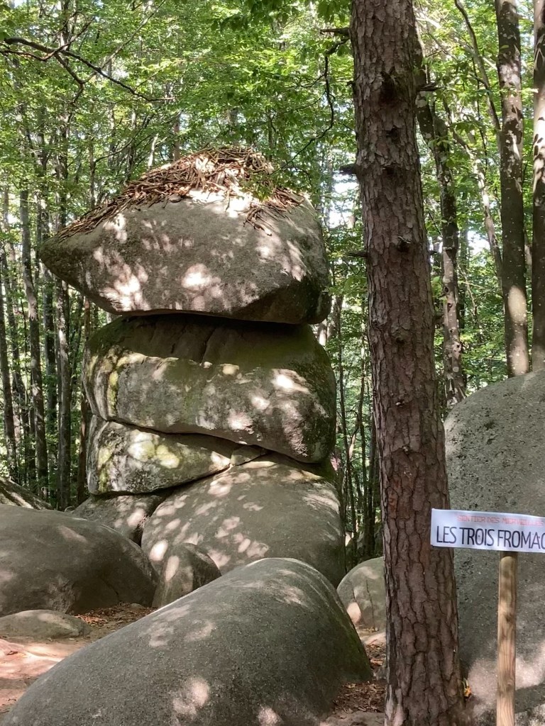 South of Albi towards the Montagne Noir lies the exposed granite area of Sidobre with rocks that a Millenia of weather exposure has left in wonderful shapes and interesting rocky positions. Again we did a “Sentier walk” around a number of the “rocks – roches “, after we had enjoyed a lunch in a local restaurant that was mainly serving the local granite quarry workers. Anyway the “plat du jour” at Euro15 each, provided us with a fresh salad starter, roast pork and ratatouille, a plate of varied cheese, apple tart, coffee and a 1/4 litre of local wine – fabulous simple food and great value .