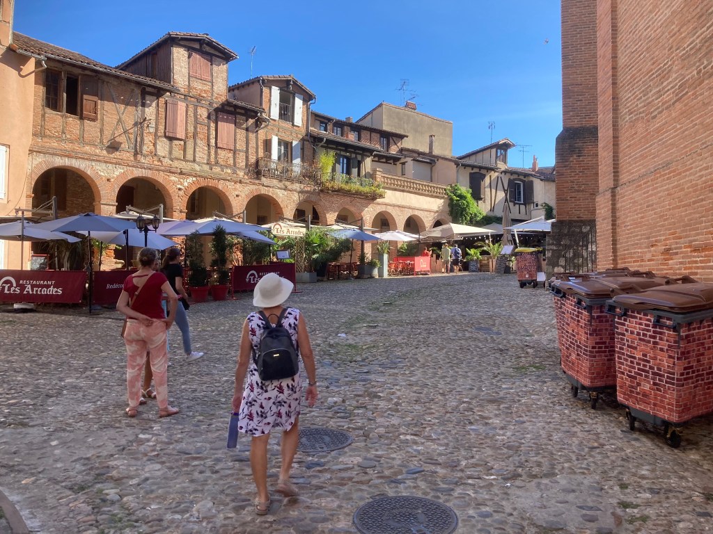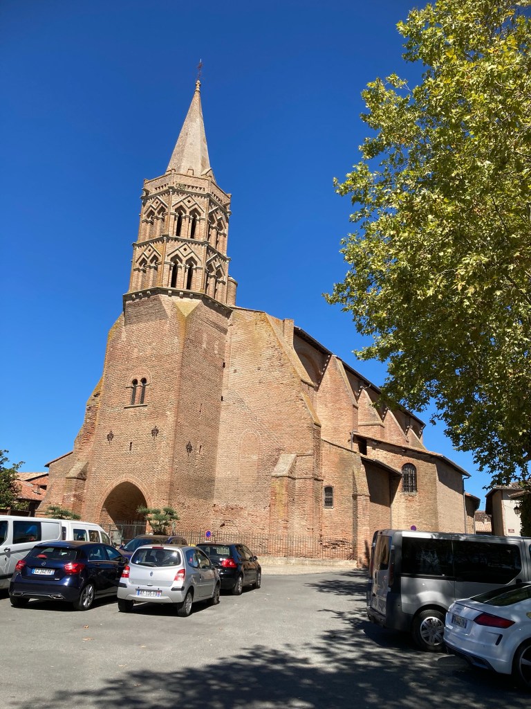 Lisle sur Tarn is just super pretty with most of the old 15/16th century timber and terracotta brick. Most of the wattle and daub rendered houses are beautifully restored with the villages central square & its archway arcades its focal point. Yes yet another French beautiful church and overall a lovely spot where we enjoyed a late lunch as we admired these views.