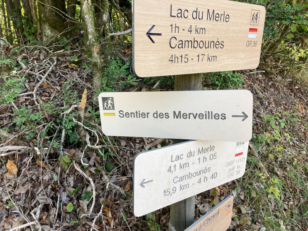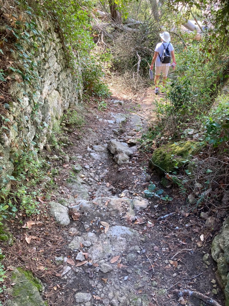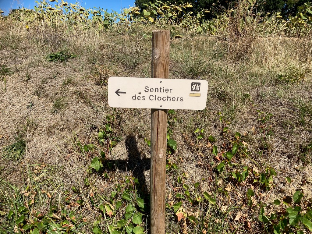 The trails for this walk and many others in France are really well sign posted. This one and the others we walked in the region are shown as “Sentiers “, with blaze markers on the trail showing in yellow paint on a tree or a rock or a building, the direction be it straight, left or right turn or X – not this way!!