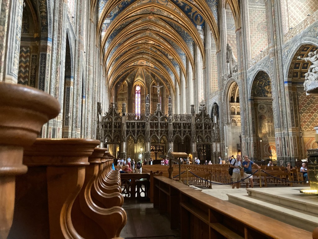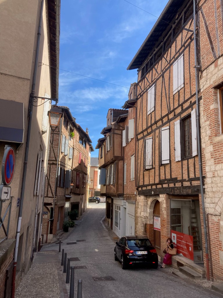 Albi and the surrounding countryside is dominated by the Cathedral of St. Cecile, and adjacent Palace de Berbie its brick architecture from the 13th century making it, apparently the biggest brick built building in the world. Unlike much of France where limestone is the beautiful traditional stone of building choice, in this part of France terracotta brick and sometimes the combination of timber with brick infill provides a beautiful palette of colour. We have 5 nights here in Albi.