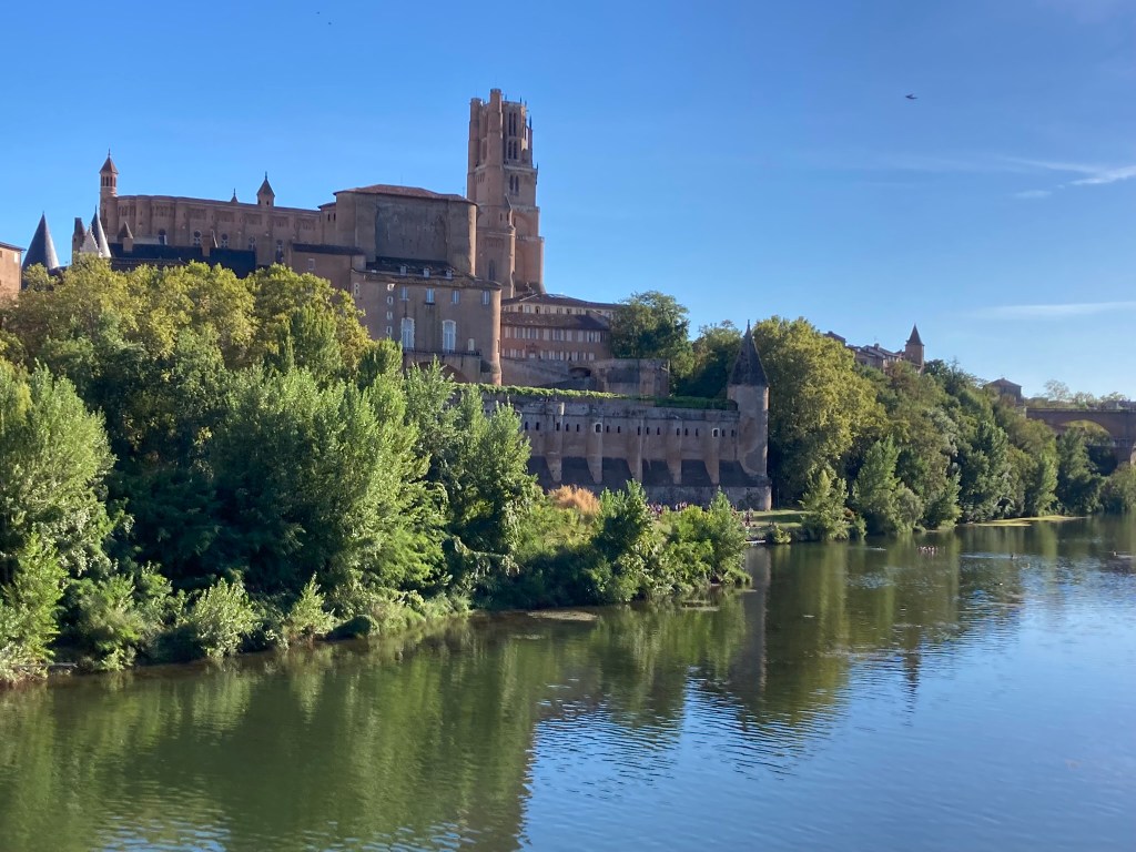 With Christina and Mike’s wedding in Aubeterre sur Dronne behind us, we have driven via Avis at Bordeaux airport , south – east about 6 hours to the ancient town of Albi on the banks of the Tarn River. Its a place we visited in 2017 and have wanted to return to, to explore some more.