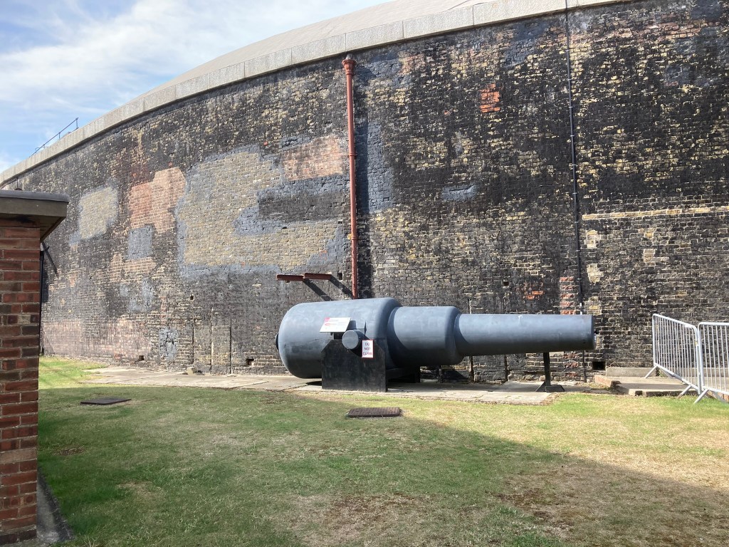 In 1667, fresh from smacking the Royal Navy off Sheerness in the English Channel, the Dutch Navy led by Admiral de Rutter landed 1500 troops to attack the Landguard Fort. With the aid of Royal Navy vessels the garrison of 500 at the Fort repulsed the invasion task force. I had never heard beforeof either of these military actions. In Victorian times the Fort was repurposed with bigger guns like the one in the pics, added and later in the 19th century a submarine netting and mining capability was added.