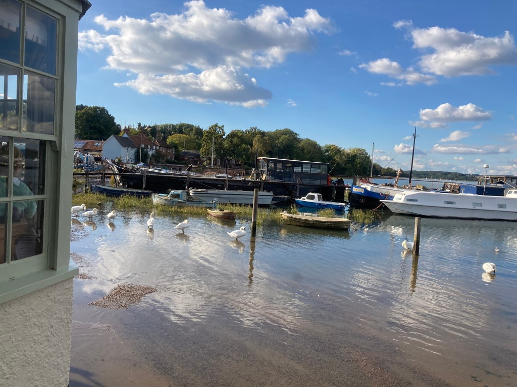 Its a sunny day in late September and we are heading to the Suffolk coast for a dose of extended English History at Heritage UK’s Landguard Fort . Originally built by Henry VIII + 1667 Dutch attempted Invasion of England + on to WW1 / WW2 . And then to a late lunch at the Butt & Oyster up the River Orwell at Pin Mill, much loved by Arthur Ransome and featuring in his childrens books, “We Did Not Mean To Go To Sea” – WDNMTGTS – and “Secret Water”.