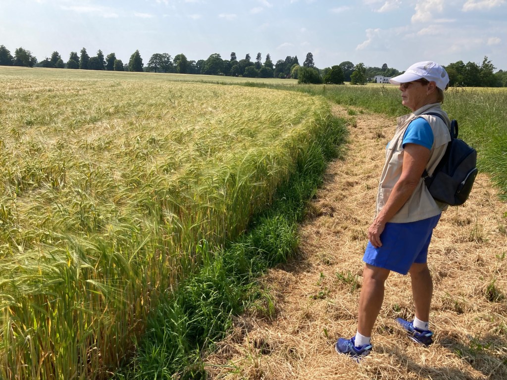 With the early heat of summer the hedgerows, brambles and stinging nettles have gone beserk, cramping in on the already narrow country lanes. We are going on one of the many walks available in the area – 5km or thereabouts, but the stinging nettles across the stile taking us across the first field, causes a rethink and we instead use a country lane for the first bit of the walk. Nevertheless in the first 1km of our walk we meet just one car.