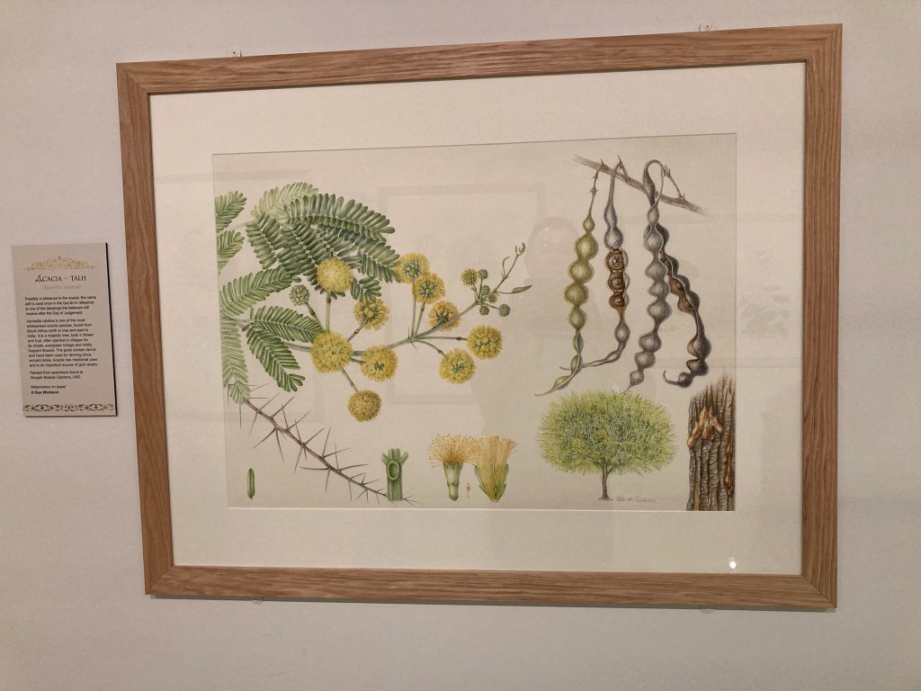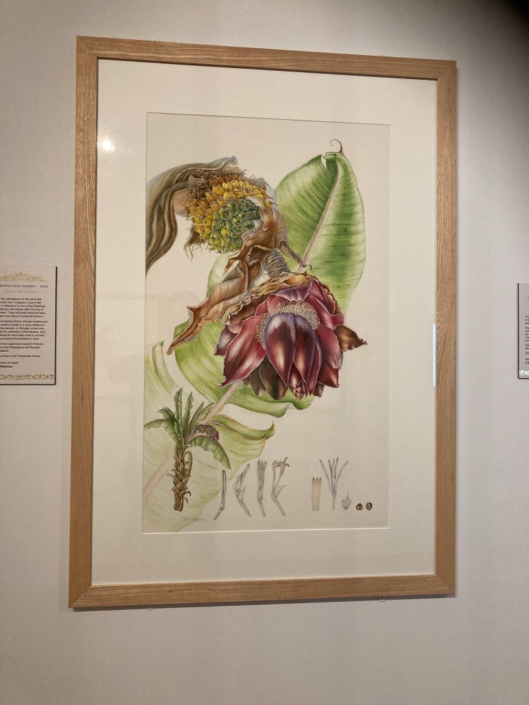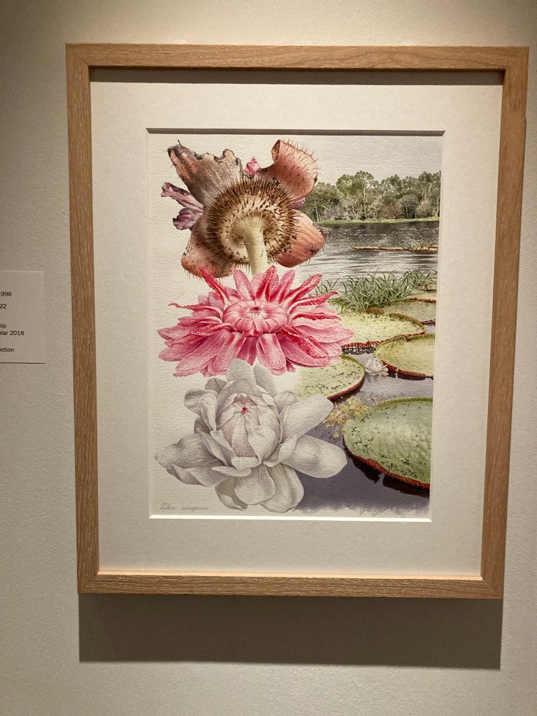 One of the Galleries is the Shirley Sherwood Botanical Art one. A simple modern very white building and interior, with the exhibits beautifully presented and doing ‘all the talking”!! The key artist on this visit was, Sue Wickison, a New Zealander – we think living on Waiheke island when in NZ- who was born in Sierra Leone, but now travels extensively both at home and overseas recording endangered plant species.