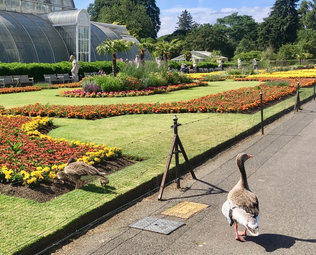 And finally no visit to Kew Gardens would be complete without the famous glass house and its surround, manicured to perfection with a family of geese and their goslings mooching around for some delicacies.