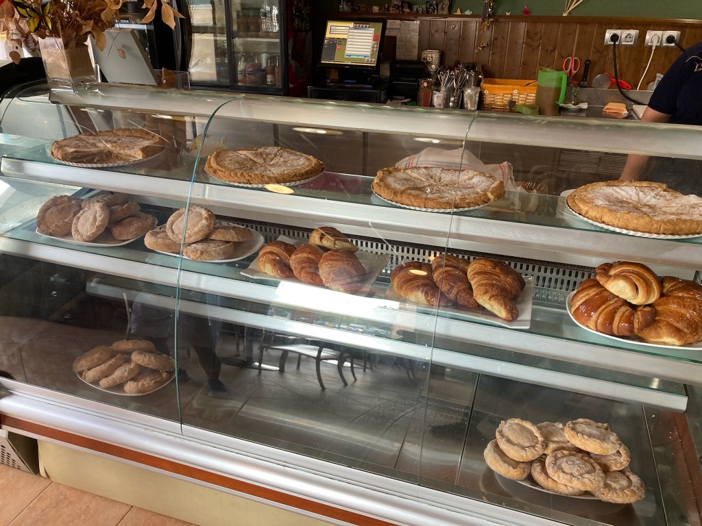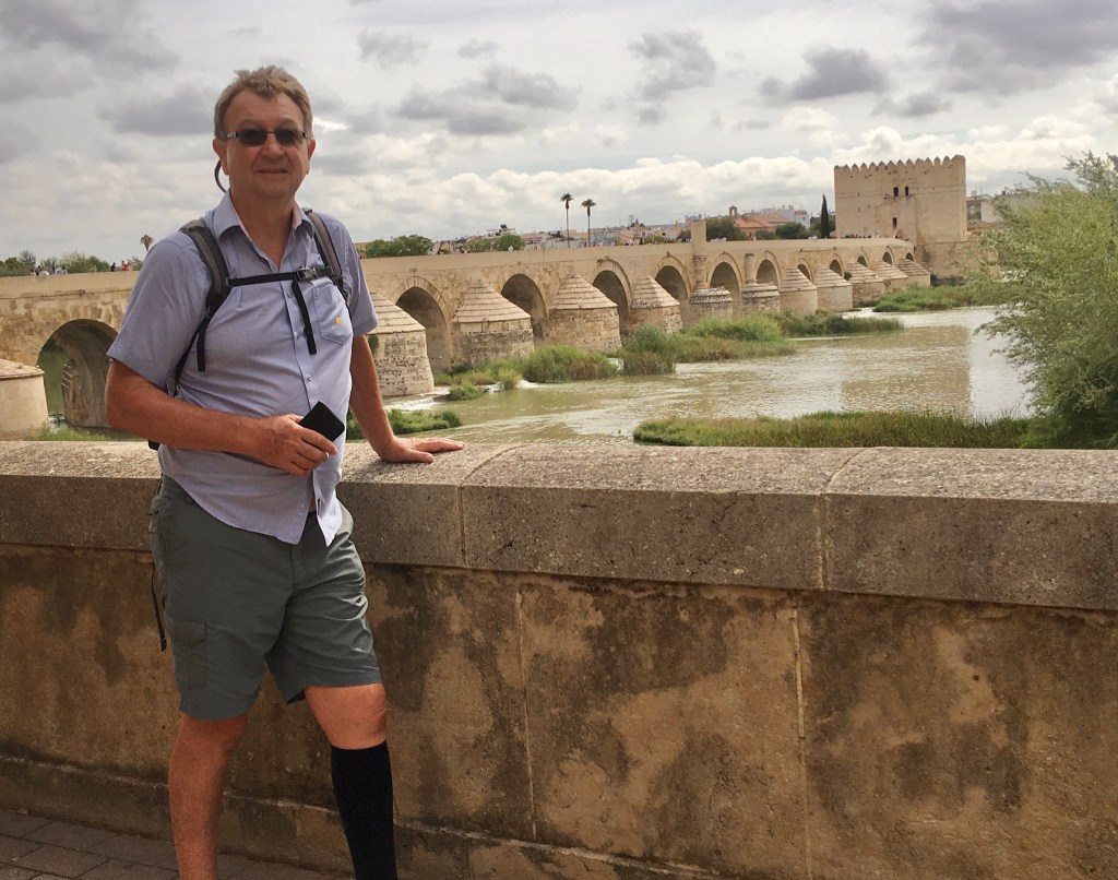 As we were early for the tour guide, we crossed the bridge over the River Quadalquivir and found a neat cafe for croissants, cake and coffee. The silting up of the river is very self evident , see waterwheel pic below – well above the river level – but the bridge is just magnificent.