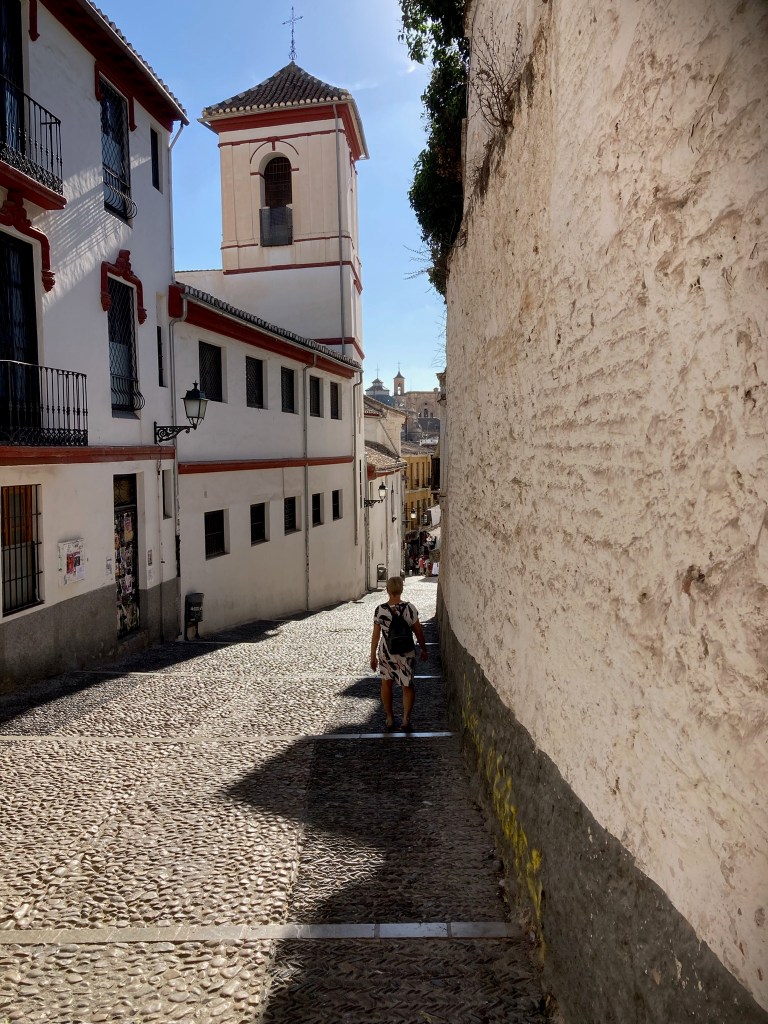 Our apartment was in a small complex – “Smart Suites Albaicin” – that was right in the middle of the Albaicin area itself. The taxi from the bus station took us on quite an interestingly convoluted route to get to the apartment, introducing us to the extraordinarily narrow and one way cobbled streets , steps & alleyways. As we soon discovered the Albaicin was an area best to explore on foot, and we did.