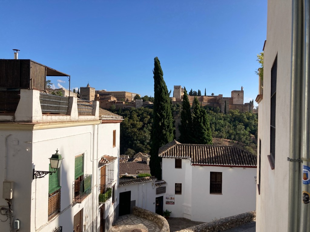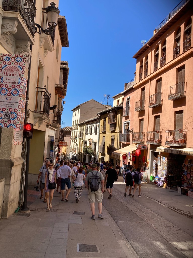 We came to Granada especially to visit the Alhambra, and we did, it was excellent and more on that below. But we found much more to Granada, in particular we did enjoy our visit to the Cathedral which is wonderful, the whole Albaicin district of Granada has beautiful old houses with tiny cobbled streets, its Miradore views across the valley to the Alhambra itself, the “souk like streets with Arab speaking traders” and the tapas bars and restaurants, all brilliant. Yet again another lovely Spanish city, proud and very focussed on its heritage and its story, but clean, friendly and leaving us with a feeling of it being very safe to wander around and explore.
