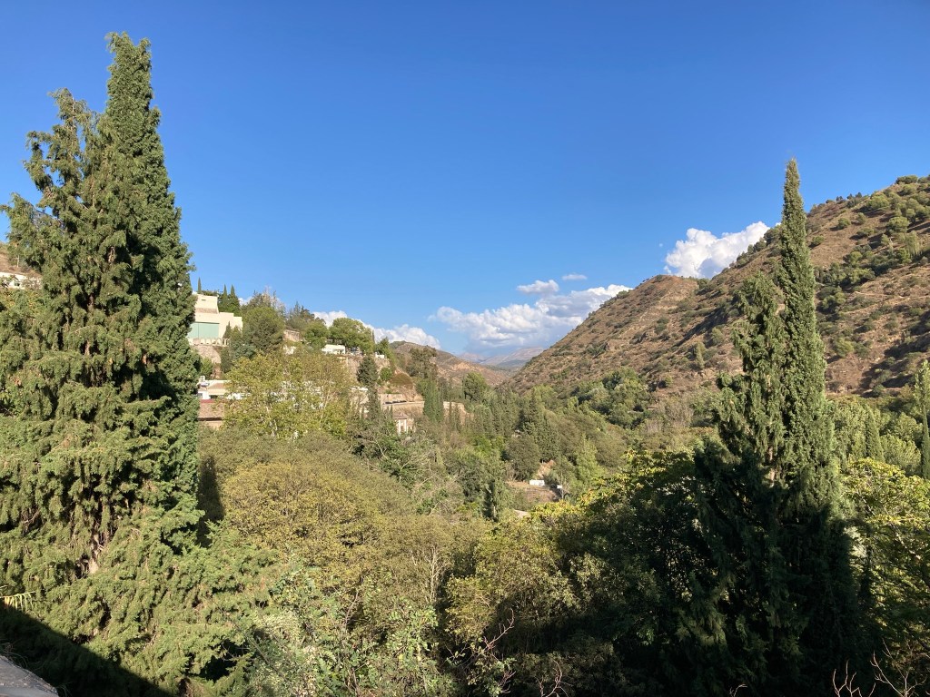 Granada is situated in the foothills of the Sierra Nevada, which in the winter months provides snow for the ski fields, only 90 mins drive away. Originally it was the good supply of water from the Sierra Nevada & the fertile irrigated soil which were a major attraction to the early inhabitants of this part of Andalusia. So for us arriving across the plains of Southern Spain, the mountains of the Sierra Nevada are impressive, overlooking but not overshadowing Granada and its main tourist attraction, the Alhambra.