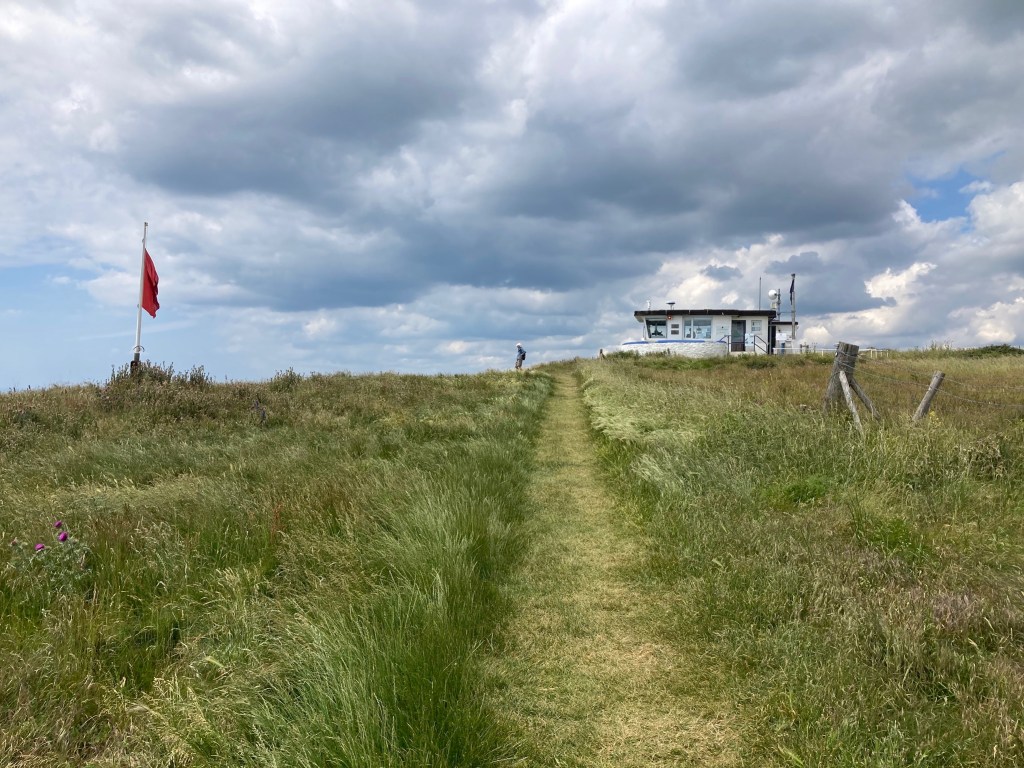 Getting to the top of the headland, we arrive at St Aldhelms Head, its Coastguard Station, a stone Chapel and also a rather striking modern sculptural monument to commemorate a Dr Bill Penley, a key figure in wartime radar development, who lived locally.