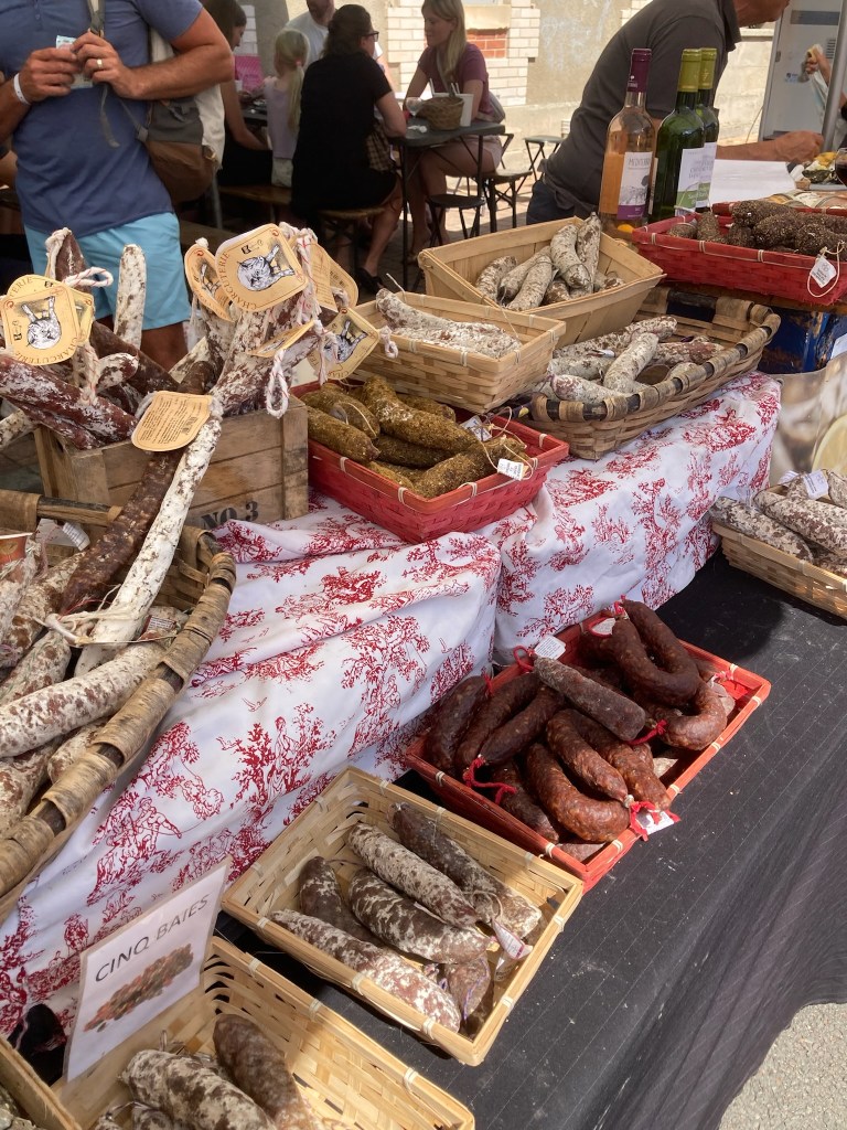 However we must not forget the compulsory visit to the Weekly Market, where bargains are on display and if not quite a bargain the offers of free samples of brioche, cheese, salamis etc, mean that more excellent cheese and cake is acquired.