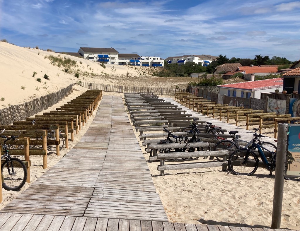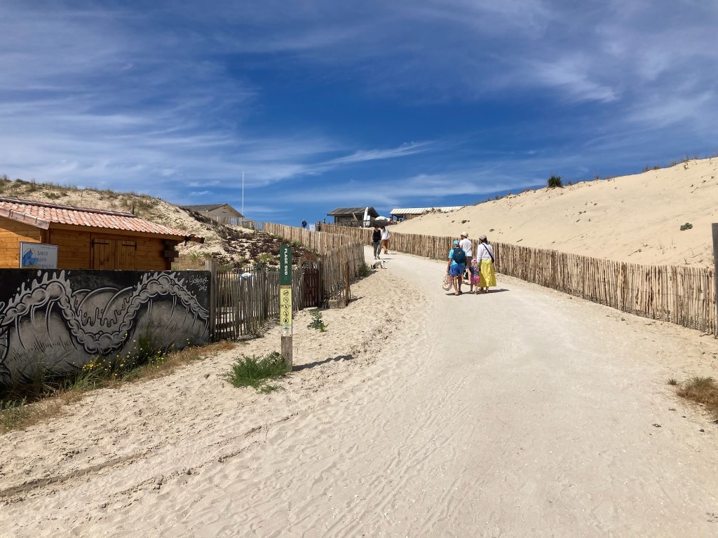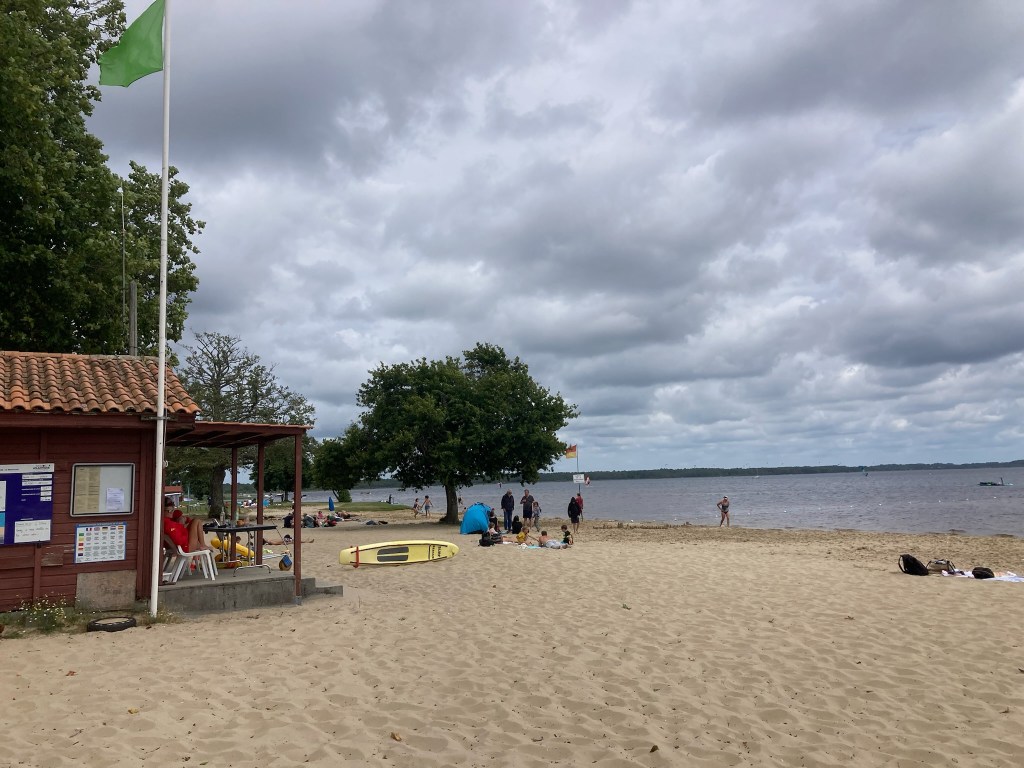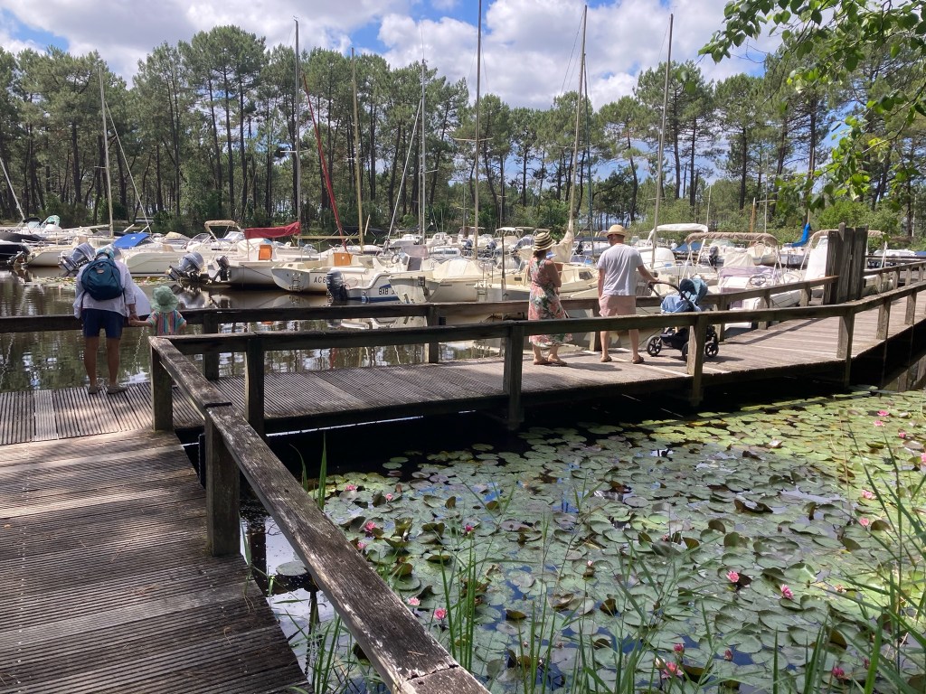 if you seek a more family safe beach/ swimming and water sports environment then the Etangs, Estuaries and Lakes are for you and us. Le Moutchic at the north end of the Etang de Lacanau was perfect for us. A short drive from our accomodation in the Marina de Talaris forested hamlet ( hameau) communities. Le Moutchic has a soft sandy beach, clean lake water, windsurfing, yachting, fishing, bouncy water castle slide combination and ice creams-perfect!!