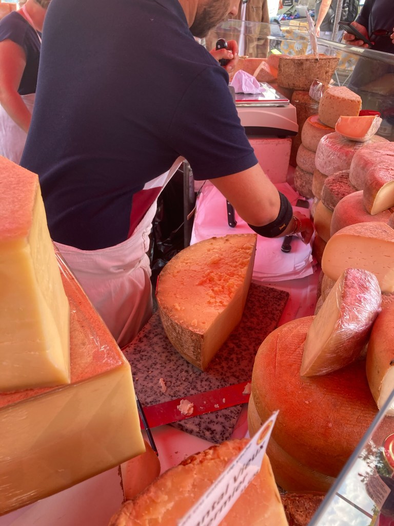 In fact we now have way too much cheese and need to invest in plastic containers and ice packs to enable said oversupply cheese to travel onwards with us!! We did contemplate the Oyster sales chap and his inviting variety of oysters, but it was a hot day, mid morning and passed on the opportunity.